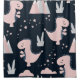 Cute seamless pattern with pink dinosaurs on a dar shower curtain