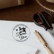 This "Thank You" stamp features a sewing machine with flowers and a bird, business name and thank you message.
