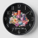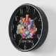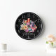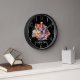 The size of the clock is dramatic and the abstract alcohol ink design is soothing and intricate at the same time. I chose the black frame that adds pop to the blue and gold design. The gold printing would be better in a slightly darker or larger font. I love it and I’m looking for just the right place in ny new apartment. I would recommend this clock for a personal gift or a present. I feel that the quality is excellent for the money! I’m a bit of a clock nut so I’m pretty particular about my purchases. The clock is larger in diameter than many if the clocks I have, so it stands out very well. I think a slightly darker printing color and a moderately larger size would best suit a professional decor or add more impact in a work place item.
