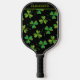 Cute Shamrock Pattern Green and Black Custom Name Pickleball Paddle