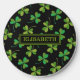 Cute Shamrock Pattern Green and Black Custom Name Wireless Charger