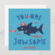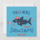 Cute Shark with pirate hat and text "you are totally jawsome" on blue background