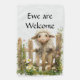 CUTE SHEEP LOOKING OVER A FENCE WITH FLOWERS GARDEN FLAG