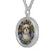 Cute Shih Tzu Puppy Blue hydrangea flowers Silver Plated Necklace