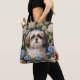 Cute Shih Tzu Puppy Blue hydrangea flowers Tote Bag