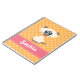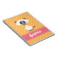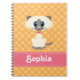 This adorable siamese cat spiral notebook with a cream, tan and white kitty cat with big blue eyes on a yellow orange polka dot patterned background can be personalized with your name on the cute and girly pink and white PRINTED contrast stitch ribbon look design. Artwork by Chrissy H. Studios, LLC. All Rights Reserved.