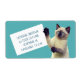 Add a dash of cuteness to your correspondence with these large custom printed return address labels. They feature a photo of a cute siamese kitten against a teal blue background with plenty of room for entering your name and address.
