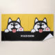 Cute Siberian Huskies custom name Beach Towel
