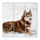 Cute Brown and White Siberian Husky portrait with incredible blue eyes on snow.