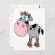 cute silly cartoon baby cow calf gray postcard