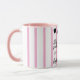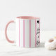 Brighten someone's morning with this adorable "Silly Goose" personalized mug! Featuring a whimsical hand-drawn goose in yellow rain boots and a pink bow, this design is set against a classic baby pink and white vertical stripe background.