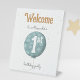 Cute Simple Blue Balloon 1st Birthday Welcome Pedestal Sign