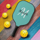 Cute Simple Blue Monogram Name + Initial Pickleball Paddle