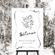 Welcome your guests in style with this whimsical Ski Cupid Winter Wedding Welcome Sign! Featuring a hand-drawn cupid skiing through the snow and elegant calligraphy framed by playful black line art, this sign adds a romantic and lighthearted touch to your celebration. Perfect for snowy mountain weddings, ski lodge venues, or cozy winter affairs.