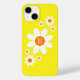 This adorable phone case features white colored flowers with a yellow background and customizable initial.
