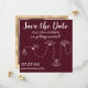 This cute and unique wedding save the date is the perfect way to let family and friends know when your special day will be happening and the times of your past special moments. This design features a minimalist burgundy red, white, and faux printed rose gold design, including a heart and dotted timeline with all of your important dates. They include when you met, when you dated, when you got engaged, and of course the most important date...when you're getting married! On the back is a feature couple photograph picture, framed in faux gold foil, which can be changed or deleted to suit your preference. It's an elegant, pretty, classy, and sweet way to present your "save the date" to all your guests!