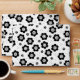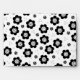 This cute floral pattern features small, stylized daisy flowers with a fun central swirl design. The black and white flowers are scattered across a white background, giving it a light, simple and retro feel. This is a whimsical, charming and minimalist print, perfect for lovers of cute and simple designs, retro aesthetics, and whimsical monochrome color palette.