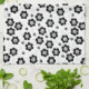 This cute floral pattern features small, stylized daisy flowers with a fun central swirl design. The black and white flowers are scattered across a white background, giving it a light, simple and retro feel. This is a whimsical, charming and minimalist print, perfect for lovers of cute and simple designs, retro aesthetics, and whimsical monochrome color palette.
