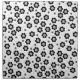 This cute floral pattern features small, stylized daisy flowers with a fun central swirl design. The black and white flowers are scattered across a white background, giving it a light, simple and retro feel. This is a whimsical, charming and minimalist print, perfect for lovers of cute and simple designs, retro aesthetics, and whimsical monochrome color palette.