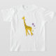 Funny giraffe kids shirt with a cute giraffe nibbling on a purple flower and holding some flowers with its tail while skating with roller skates which wheels are made of flowers.
