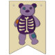Add some fun to your Halloween party with this cute bunting banner. It features illustrations of cute stuffed animals with some of their skeletons showing for a slightly spooky look along with some patched plush pumpkins. There’s a bat, a bear, a cat, a dog and a rabbit. The animals and pumpkins are in shades of charcoal gray, purple, teal and orange and set against an antique cream colored background. Five of the flags have a "HAPPY HALLOWEEN" message on them which can be customized with your own text.