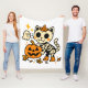Cute Skeleton Cat with Pumpkin Fleece Blanket