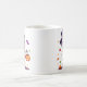 This adorable Halloween mug features a cheerful cartoon skeleton with big, friendly eyes, rosy cheeks, and a happy smile. Wearing a purple top hat with an orange band and bow tie, the skeleton holds a jack-o'-lantern candy bucket surrounded by floating candies, apples, and orange starbursts. Perfect for hot cocoa, coffee, or tea during spooky season, this cute design adds a fun and festive touch to your mornings. Makes a great Halloween gift for friends, coworkers, or family!