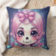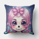 This artwork features a playful and charming skull adorned with vibrant pink hair, accessorized by a cute bow. Surrounding the skull is an array of colorful flowers, adding a whimsical and cheerful touch to the design. The overall style is cartoon-like and lively, making it especially appealing to children and those who enjoy fun, girly aesthetics.