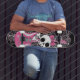 Cute Skull with Pink Guitar Skateboard