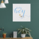 Cute sleeping baby boy typography blue nursery poster. It features a sleeping baby boy on a cloud and the text "Baby boy" in a cursive script typography.
