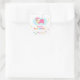 A party label for your party favors and party decoration needs! It has a little baby girl sleeping peacefully and blissfully in her pink pyjamas and sleeping cap. She is lying on the comfortable cloud that is raining little droplets of hearts, playing on the image of baby shower. Personalise easily with name. A colourful rainbow palette which is perfect for a baby shower.