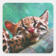 Cute Sleeping Baby Ocelot Kitten Square Sticker
