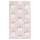 A gift bag with a cute pattern of sleeping kitty cats. On a pink background.