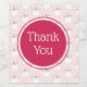A thank you wine bottle label. Thank you written inside a pinkish red circle. Designed with a cute pattern of sleeping kitty cats all around looking peaceful and happy. Pink background.