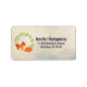 Address labels with a a cartoon drawing of a cute orange fox sleeping peacefully. A green leaves wreath behind. A grunge cream colored background with faint geometric shapes.