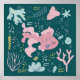 An illustration of a pink fish with underwater elements. The background can be customized to any color to fit your theme!
