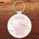 Cute Sleeping Teddy Bear Baby Girl Birth Stats Keychain
