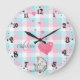 Cute Sleepy Cat Pink Blue Monogram Large Clock