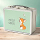 Cute Sleepy Little Fox on Green Metal Lunch Box