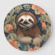Cute Sloth Elegant Floral William Morris Inspired Large Clock