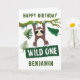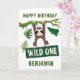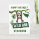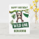 Cute First Birthday Card. Send wishes and love to the wild one with this cute card featuring sloth and jungle greenery. Personalize with a message inside and baby's name on the front.