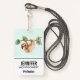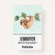 Name badge with an adorable sloth hanging upside down from a tree branch. Tree branch is decorated with tropical leaves and berries.