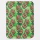 Cute baby blanket with a pattern of sloths on a green background of cecropia leaves, one of their favorite things to eat.