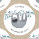 Cute and whimsical watercolor sloth typography design. Text says Thanks for hanging out, and can be changed to customize.