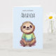 Birthday card with an adorable illustration featuring a happy looking sloth wearing a green t-shirt.