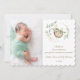 Unique Baby Shower card design featuring cute watercolour baby sloth, airy greenery, faux gold outlined leaves, your baby photo, on a white background. Use Personalise tool to add your info. For matching items, please, visit my Safari Baby Shower Birthday Collection.