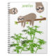 Fun and cute sloths hanging out, monogrammed spiral notebook.