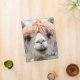 A Cute, Smiling Alpaca Photography Image. Closeup face of a beige, white, fawn colored Alpaca. He has a smile for his closeup. The Alpaca is similar to, and often confused with, the llama.