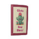 This personalized wallet features a cheerful, friendly cactus with a big smile and a vibrant pink flower on top, designed in a simple, flat, and playful style with clear outlines and the phrase "Stay Sharp!".