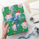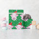Here's a cute way to wrap up your gifts this holiday season: wrapping paper with a pattern of smiling pink pigs wearing Santa hats as pastel snowflakes fall around them. The green background can be changed to the color of your choice; just click on the "Customize" button and proceed.